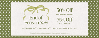 SHOP OUR END OF SEASON SALE - 50% OFF WINTER STYLES & 75% OFF CLEARANCE