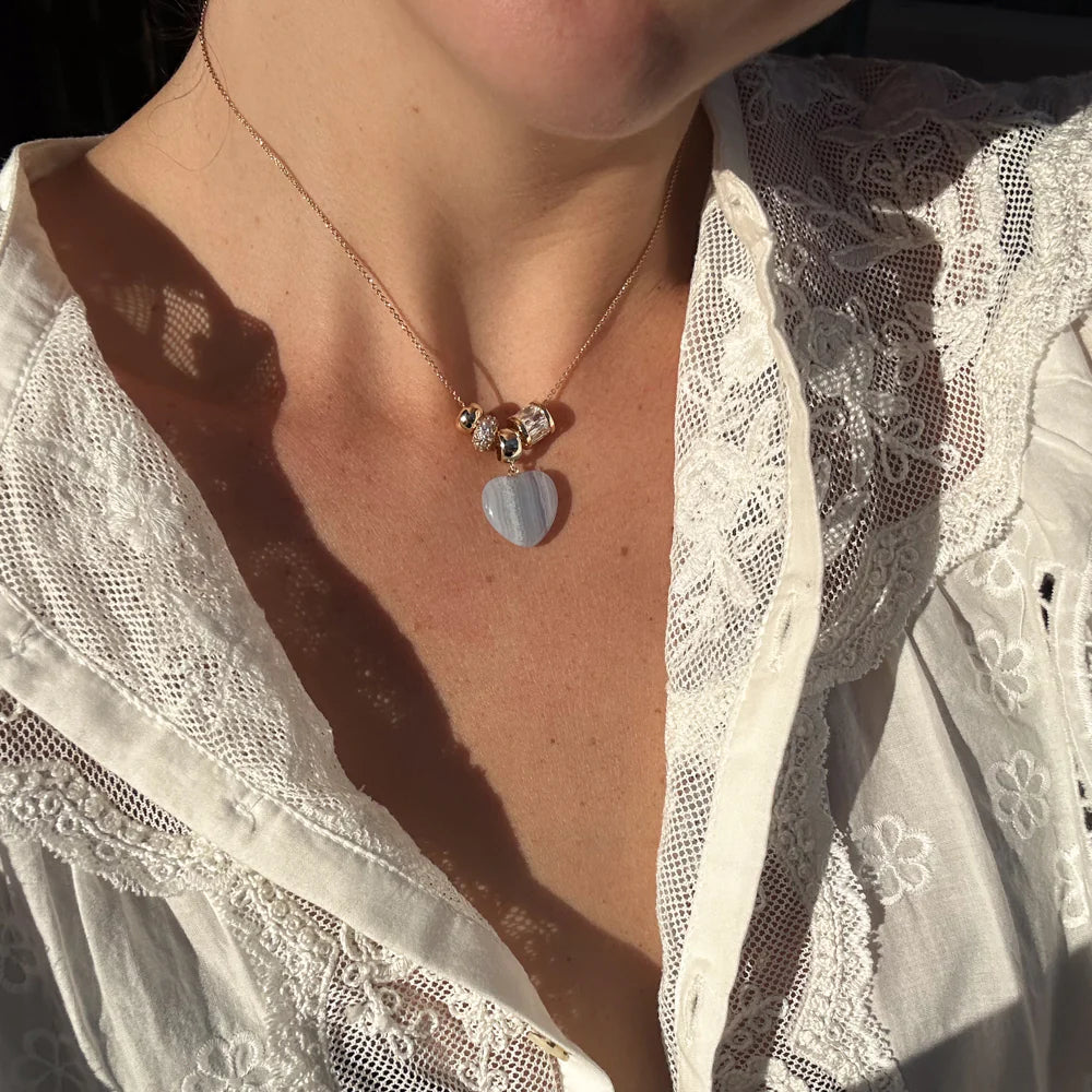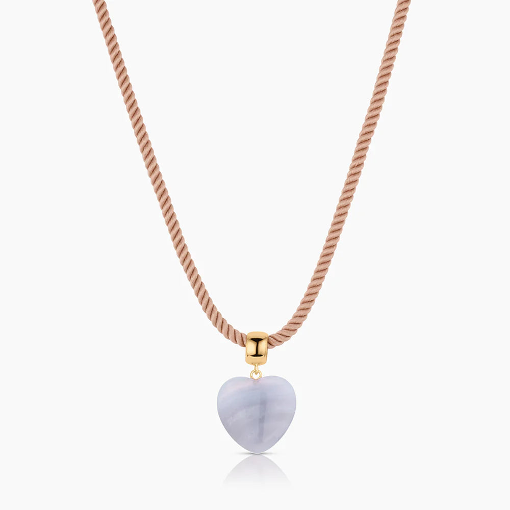 Our newest way to wear the Gemma charm; a hand-carved blue lace agate puffy heart on a rounded bail for total necklace versatility.