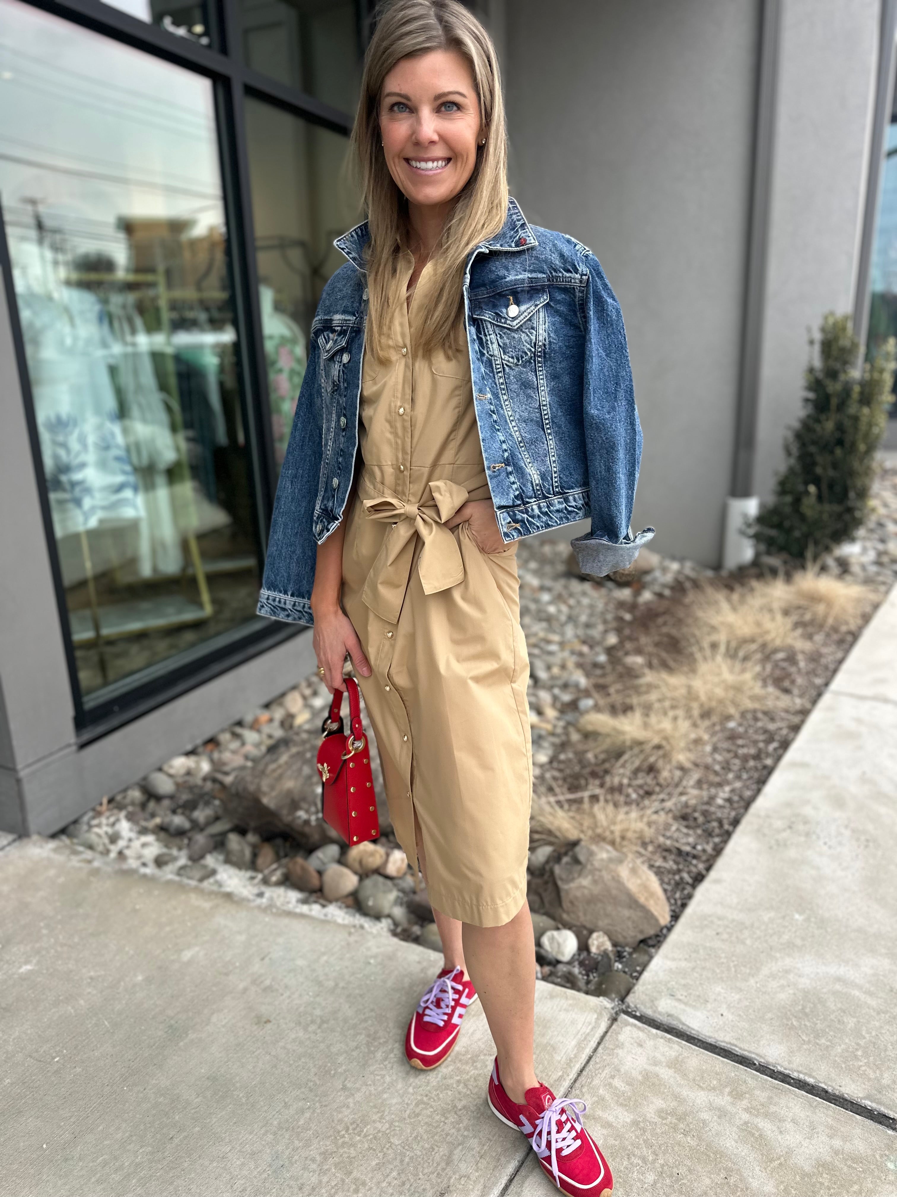 Effortless, polished, and endlessly wearable — the Pocket Midi Dress by Jade is the definition of everyday chic. Designed in a timeless khaki hue, this button-front silhouette features a classic collar, short sleeves, and a flattering midi length that feels both relaxed and refined.