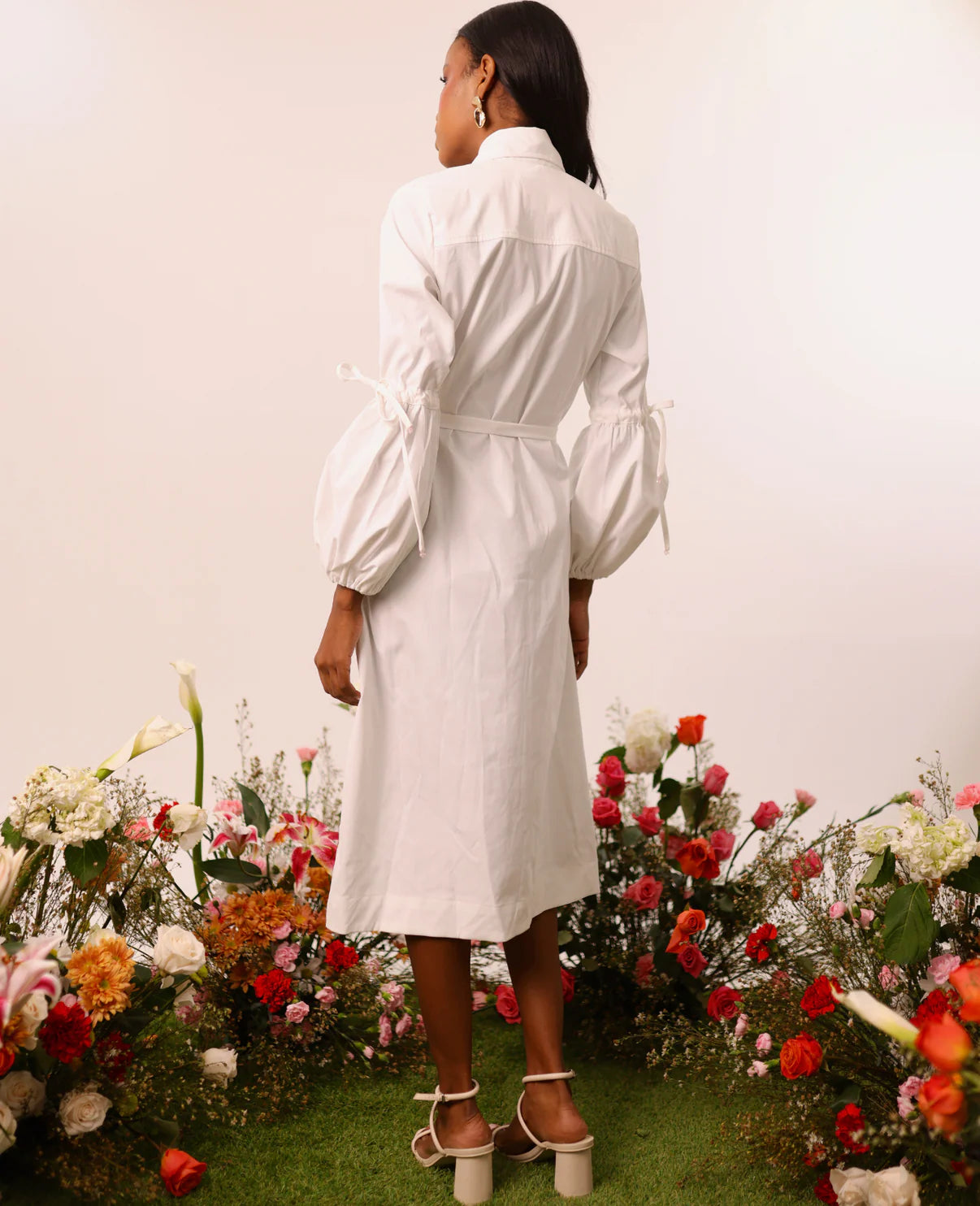 The Ashey dress reinterprets the classic shirt dress with a comfortable twist. With balloon sleeves that add subtle volume, a hidden bib that maintains a clean silhouette, and delicate embroidery at the neckline that adds a handcrafted touch, this piece is ideal for elegant and modern looks. Versatile and timeless, it adapts to formal occasions or stylish casual events.