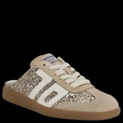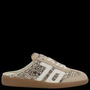 The Glitter Mule Sneaker by Back70 is your everyday sneaker—turned all the way up. Designed with shimmering gold glitter and a cool, vintage-inspired silhouette, this sneaker mule blends laid-back ease with just the right amount of glam. The open-back style makes it an easy slide-on-and-go, while subtle suede trims and retro detailing keep it feeling elevated and intentional.