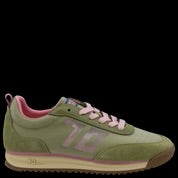 • Olive suede, leather, and mesh upper with soft pastel accents