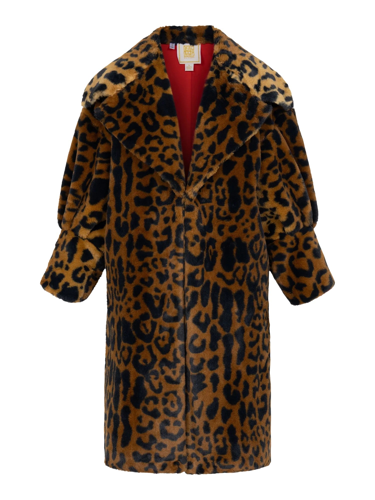 The Manhattan Coat in Lady Leopard is a true statement piece that balances cozy comfort with high-fashion drama. Designed in a plush leopard fur fabric, this coat makes an entrance with its bold oversized lapel, dramatic open cuffed sleeves, and classic hook-and-eye closure. The striking red lining offers an unexpected pop of color, adding even more personality to this head-turning style. A timeless layer that’s as warm as it is commanding, perfect for making a fierce impression this season and beyond.