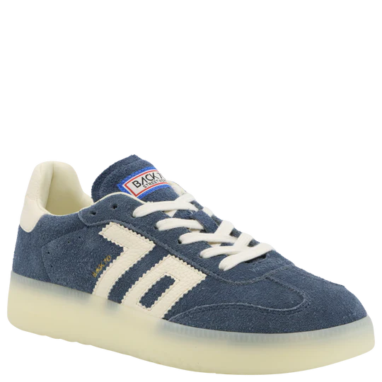 Step up. These colorful platform sneakers feature Back 70's signature vintage style and bold '70' emblem infused with classic soccer-sneaker details. These essentials in a distinctly nostalgic color palette are hand crafted in small batches with soft, suede leather uppers and smooth leather details. The gummy rubber sole gives these kicks an updated aesthetic as well as a pretty sweet tread. Update your street style in Boston LS by Back 70.