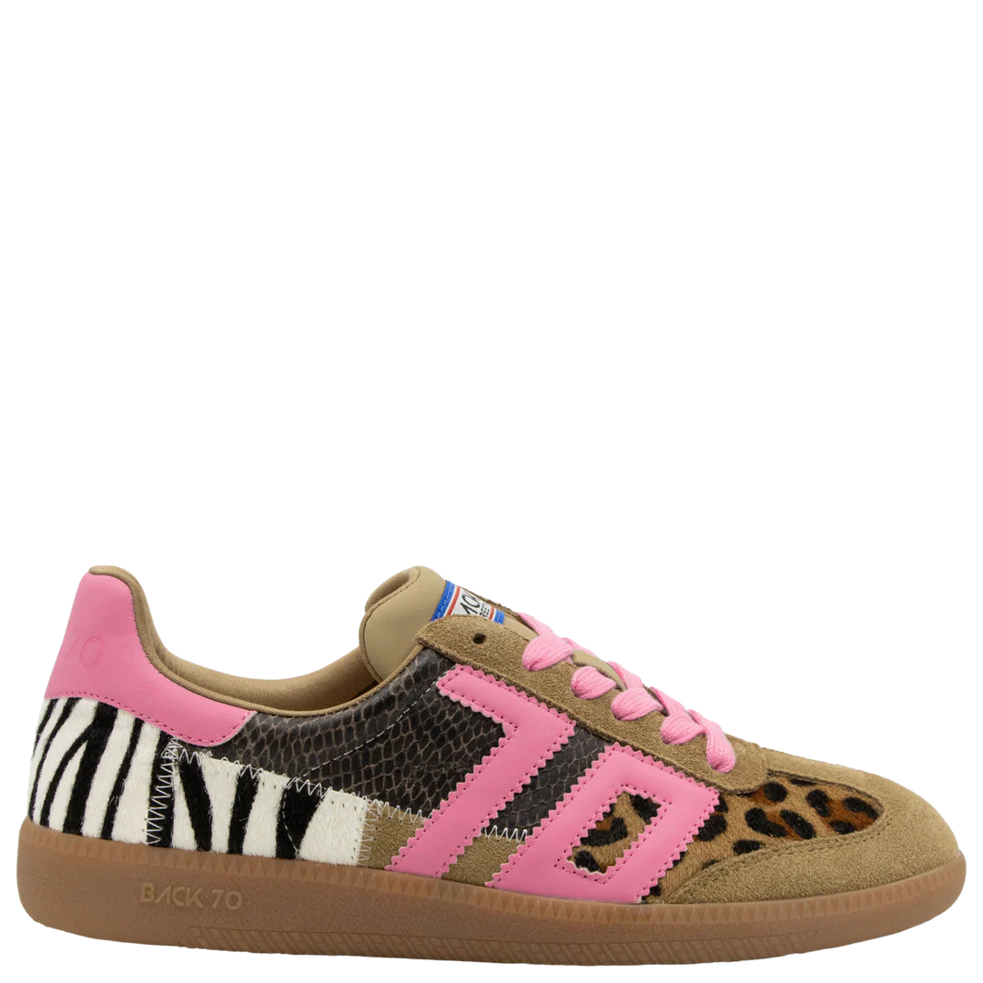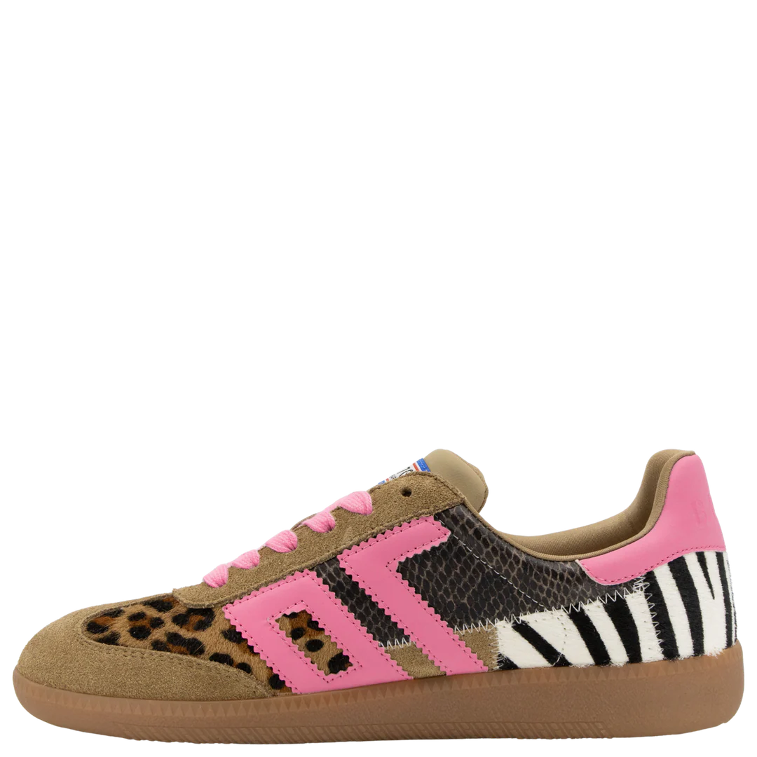 Say hello to the most bold iconic sneakers of the season. Animal print always makes a statement, and Squid takes it to the next level with a patchwork of rich leathers and a distinctly girly punch featuring Back 70's signature vintage icon in bright lipstick pink. If fashion were time, this is the moment you've been waiting for.